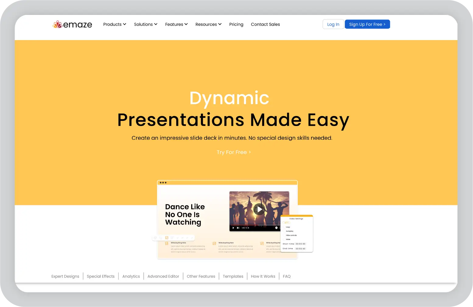 Emaze는 창의적인 템플릿과 시각 효과로 유명한 클라우드 기반 프레젠테이션 카지노 슬롯 머신 규칙입니다. 사용자가 3D 레이아웃과 비디오 배경을 통해 눈에 띄는 프레젠테이션을 구축할 수 있도록 돕는 데 중점을 둡니다. 이 플랫폼은 복잡한 설정 없이 시각적으로 독특한 슬라이드를 원하는 사용자를 위해 설계되었습니다.